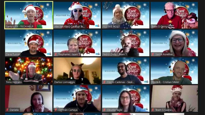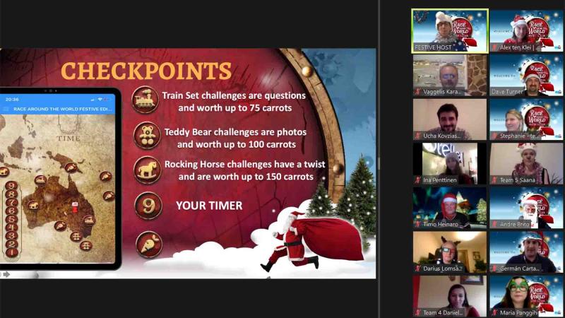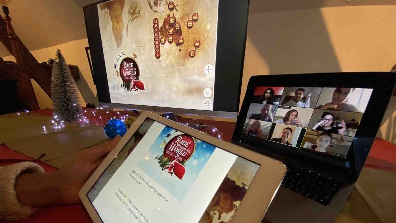 «Race Around the World - Festive Edition» permet à votre personnel travaillant à distance ou en télétravail de s'extraire de leurs rôles cloisonnés, d'interagir directement avec leurs collègues et de créer de nouveaux liens interpersonnels dans une atmosphère relâchée et informelle. Chaque équipe devra s'attacher à créer un plan de route malgré les nombreuses inconnues caractérisant le jeu et adopter dès lors une approche agile au fur et à mesure que le jeu progresse. Pour mener à bien la collecte des informations et pour résoudre les défis, les équipes devront faire preuve de curiosité d'esprit, d'une pensée créative et de fortes compétences d'investigation et de coopération. La conception du jeu même encourage tous les participants à faire usage d’une écoute active et d'une communication claire auprès de leurs coéquipiers, leur offrant ainsi les outils d'apprentissage expérentiel afin de développer et peaufiner leurs compétences en communication en ligne. En poursuivant un objectif commun, les participants pourront renforcer leur cohésion tout en s'échappant de leur environnement de travail quotidien dans ce voyage virtuel et festif autour du monde.