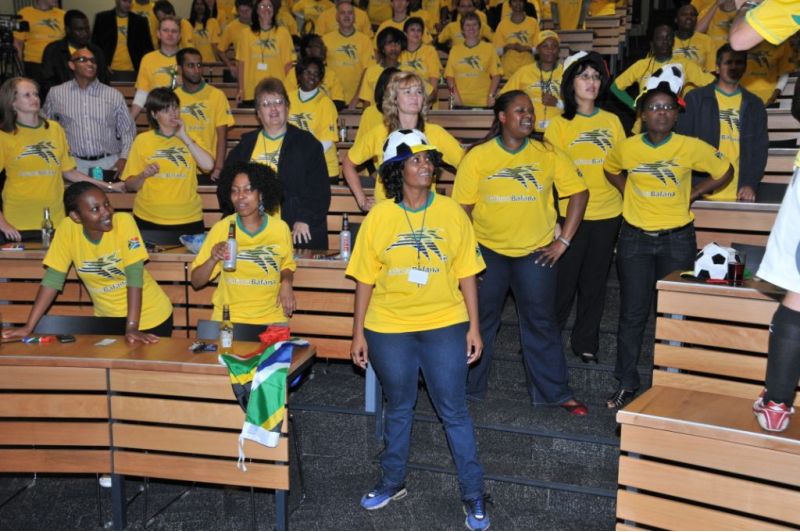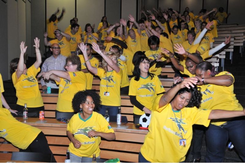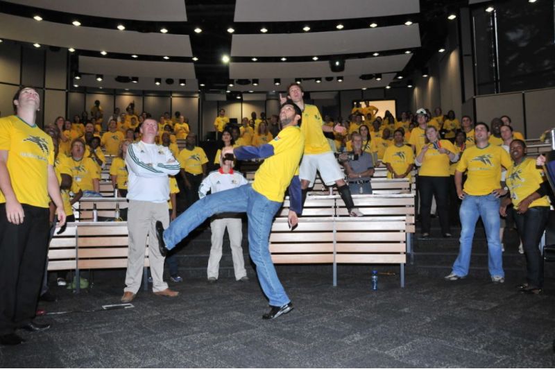 Le groupe est partagé en deux équipes, guidées par un coach. auxquelles des vidéos avec différents effets sonores sont attribuées. Les actions physiques et vocales incluent les coups d’envoi du match et du sifflet, les acclamations du public, le rebond du ballon contre la poitrine et le célèbre « Goaaal » brésilien. Les équipes répètent leur chant respectif avant de s’affronter. L’équipe gagnante célébrera sa victoire en faisant l’Ola mexicaine.