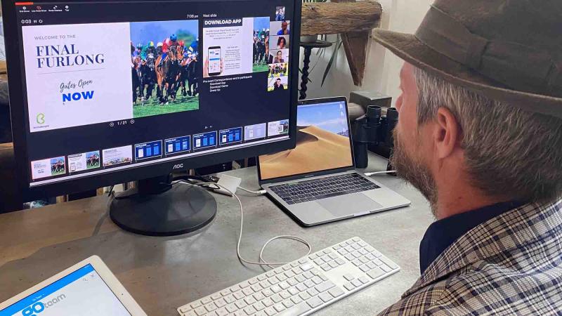 Final Furlong est une expérience virtuelle amusante qui permet de réunir les membres de votre équipe à l'aide de notre application mobile interactive. Peu importe où se trouve votre personnel, chacun des membres pourra dorénavant se réunir à distance afin de vivre ensemble l'effervescence des courses hippiques. Après un briefing via la plateforme de visioconférence de votre choix, chacun des participants sera invité à étudier le guide expliquant la façon de réaliser et placer des paris via notre application mobile. Enfin, les courses hippiques pourront débuter et seront retransmises en direct par le biais de la vidéoconférence, afin que tout le monde puisse vivre ensemble l'atmosphère bouillonnante des courses de chevaux.