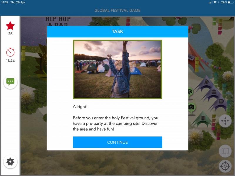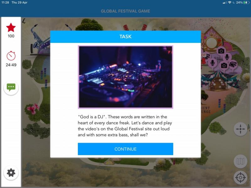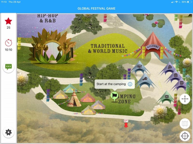 Les équipes représentent un groupe d'amis se rendant à un festival de musique d'été. Elles entrent sur le site du festival en téléchargeant une application sur leur appareil et en scannant un code QR. Le terrain du festival mondial comporte 7 scènes musicales différentes, chacune présentant un genre musical différent. Les équipes se lancent à la découverte de toutes ces scènes. Elles résolvent des énigmes, recherchent des artistes et des renseignements, prennent des photos et des vidéos pour montrer leur expérience et répondent à des tâches pour gagner des points pour leur équipe. L'équipe gagnante est celle qui obtient le plus de points.