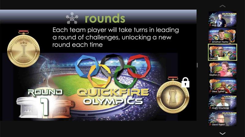 Quickfire Olympics Online est un excellent moyen d'apprendre à travailler en équipe à travers une expérience amusante et engageante. Chaque joueur doit jouer le rôle de capitaine d'équipe, Quickfire Olympics est donc un excellent moyen de perfectionner ses compétences en leadership. La pensée créative, l'écoute des idées des autres, se lancer, permettront aux équipes d'appréhender des tâches les plus stimulantes et les plus enrichissantes. Au cours du jeu, les équipes qui travaillent ensemble développeront la confiance en leurs compétences collectives. Dans un véritable esprit sportif, l'équipe qui communique clairement et encourage une participation maximale de tous ses membres, sera sûre de trouver une place sur le podium virtuel.