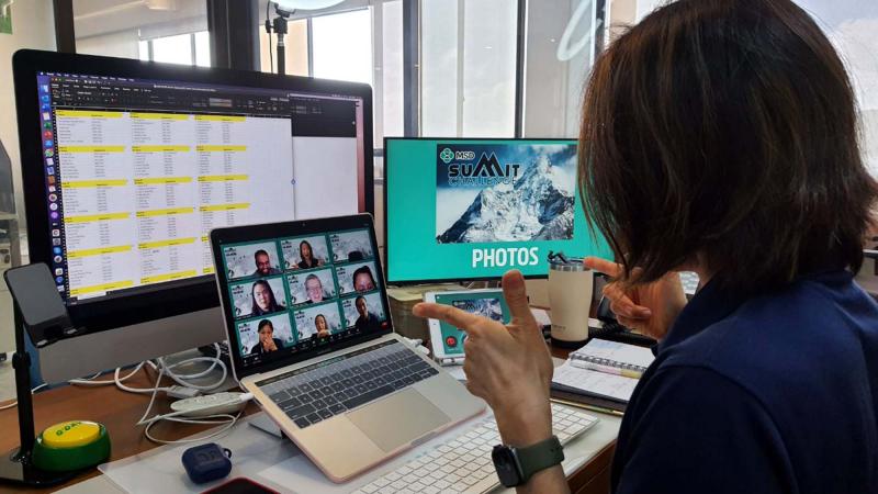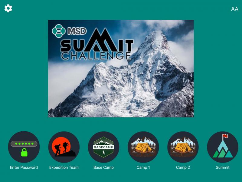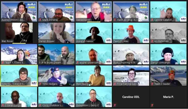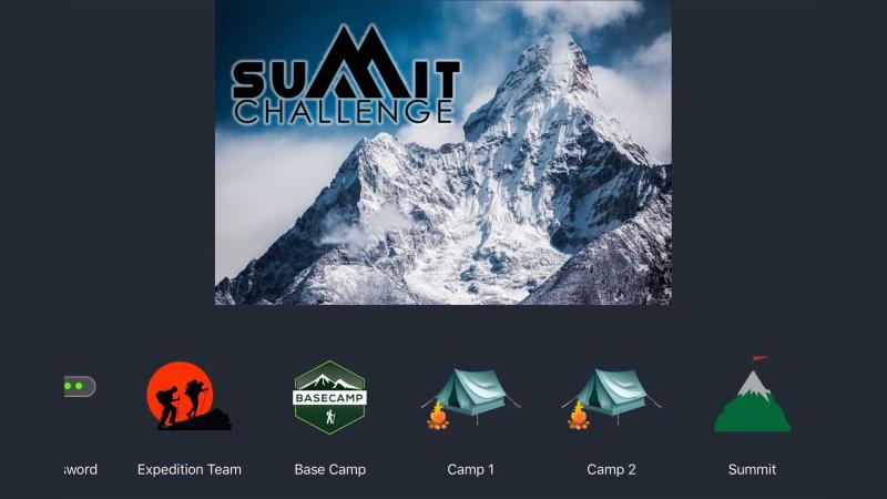 Guidées par notre application personnalisée, les membres de l'équipe forment alors une équipe d'expédition s'apprêtant à un voyage à plusieurs niveaux. L'activité propose aux participants d'engranger des points à travers des défis aussi bien amusants qu'engageants leur permettant de monter progressivement entre les niveaux - ceux-ci exigeront notamment qu'ils se répartissent les rôles. Les grimpeurs et le chef d'expédition devront prendre soin de combiner leurs diverses informations et instructions afin d'assurer qu'ils puissent rallier le camp de base au sommet avec succès. Arrivés en haut, ils pourront alors prendre une photo d'équipe afin de célébrer leur exploit. Summit Challenge peut être personnalisé pour inclure des questions thématisées et en lien avec l'entreprise.