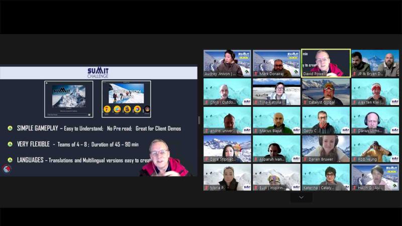 Se fondre dans la peau d'une équipe d'expédition virtuelle a tout d'une simulation à succès, en y ajoutant la pression d'un contre la montre, les équipes peuvent explorer les nouvelles règles d'engagement tout en recherchant l'efficacité de leur équipe virtuelle. L'activité offre également le format idéal afin de traiter et de développer d'autres résultats d'apprentissage essentiels tels que la communication efficiente, la prise de décision rapide et la planification stratégique autour du bénéfice-risque. Enfin elle propose un concentré d'apprentissage expérientiel grâce à une expérience créative partagée et l'accent mis sur la poursuite d'un objectif commun, afin de faciliter la mise en application au sein de l'environnement de travail.