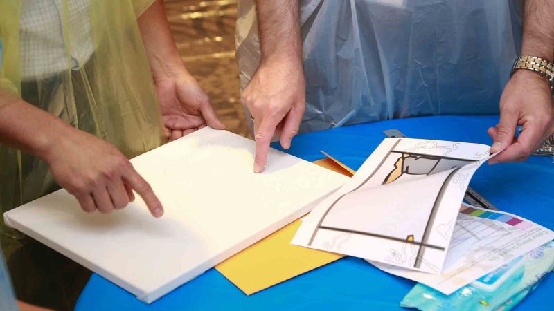Les participants, divisés en groupes, recevront des toiles vierges, représentant chacune une partie de l’œuvre d’art finale. Vous aurez préalablement choisi l’image ou le message à peindre. Des informations techniques concernant la conception du tableau seront fournies à chaque groupe. La collaboration et l’esprit d’équipe seront déterminants dans la réalisation de l’œuvre finale. Une fois que le temps est écoulé, notre équipe réunit les différentes pièces du tableau et invite les participants à venir assister à l’exposition.