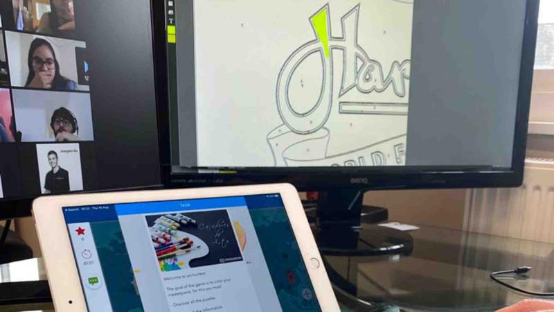 Les équipes sont divisées en petits groupes. Ils téléchargent les toiles virtuelles de leur équipe. Ils commencent par effectuer une « grande visite virtuelle » à travers les principaux musées du monde, en répondant aux questions du quiz sur l'art. Une réponse correcte leur attribue des codes RVB vitaux qu'ils utiliseront pour appliquer la bonne couleur à leur segment de peinture numérique. Les participants partagent les informations qu'ils ont découvertes avec leur équipe. Pour toute information manquante, ils devront demander des informations aux autres équipes. Ils se mettent ensuite à peindre leurs segments de l'imagine finale. Une fois terminé, les équipes enregistrent et soumettent leurs images. Les peintures sont compilées pour créer une œuvre d'art collective. L'animateur de l'événement révèle l'image au groupe et les guide à travers une discussion sur les principaux enseignements de l'événement en fonction du résultat !